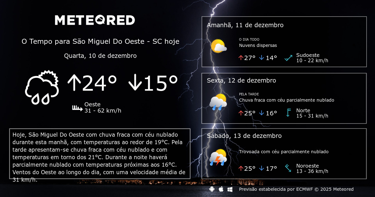Tempo em São Miguel Do Oeste SC. Previsão para 14 dias tempo.pt Meteored