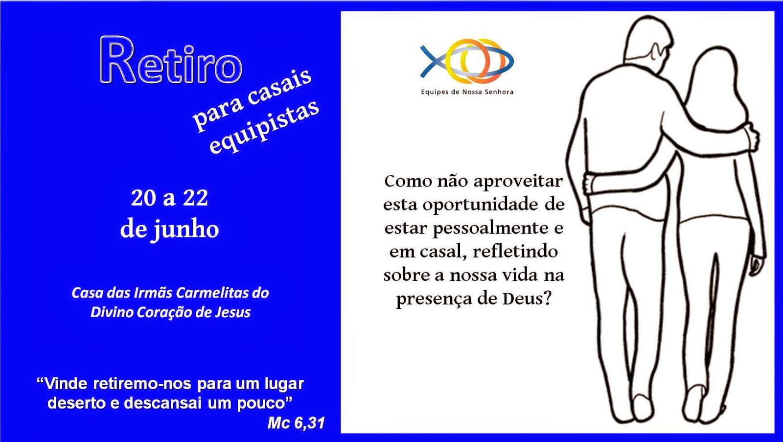 Equipes de Nossa Senhora. Associação Internacional Católica de Leigos, reconhecida pelo Decreto 650/92/AIC-18, do Pontificium Consilium pro Laicis. Carisma: Espiritualidade Conjugal | Mística: Reunidos em nome de Cristo, Auxílio mútuo, Testemunho