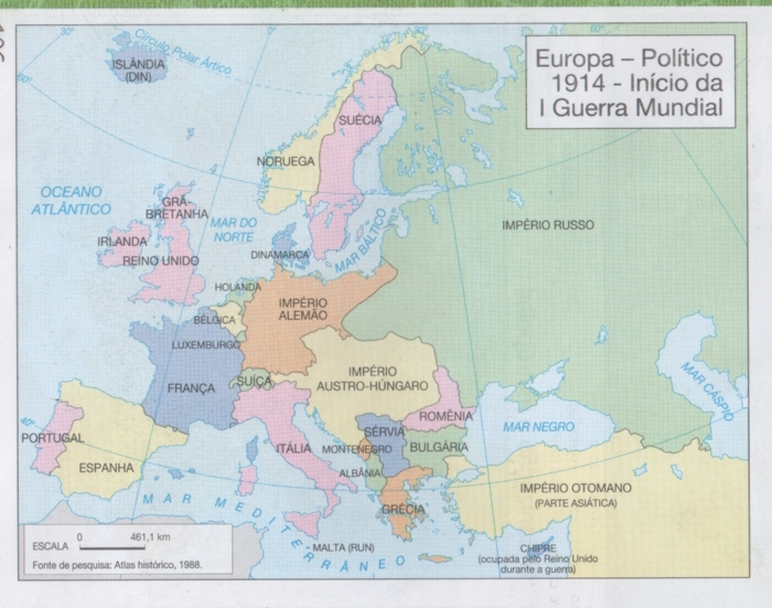 compare os dois mapas que mostram a situação da Europa antes e depois da Primeira Guerra Mundial