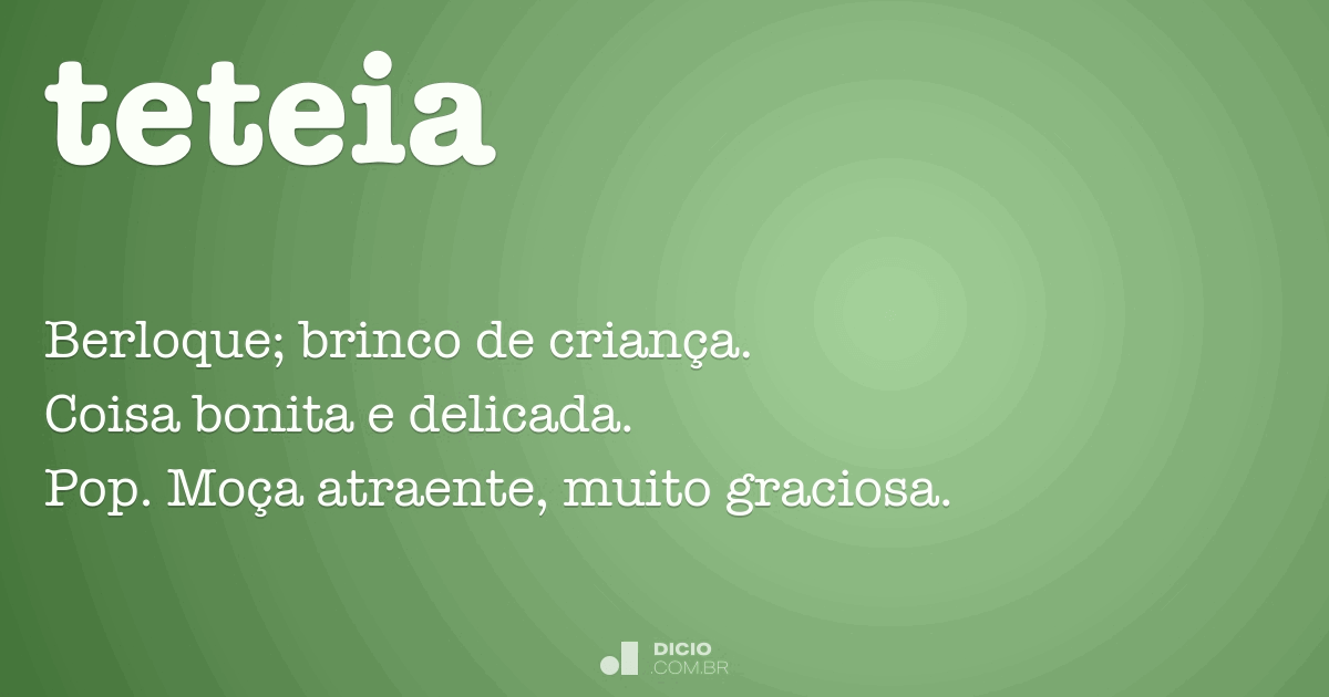 Felipão, noves fora aquele afago autoritário, aquele bilu teteia que fizeste no Pinochet, tu és um grande cara. Folha de S.Paulo, 14/09/2012. Significado de Teteia no Dicio, Dicionário Online de Português. O que é teteia: s.f. Berloque; brinco de criança. Coisa bonita e delicada. Bras. Pop. Moça atraente, muito.
