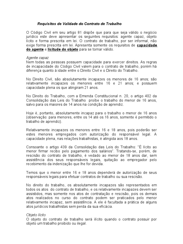 Requisitos de Validade Do Contrato de Trabalho PDF Direito Privado Conceitos jurídicos