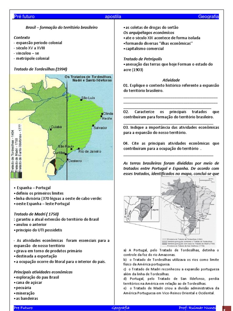 Exercicios De Geografia Formação Do Territorio Brasileiro EDUCA