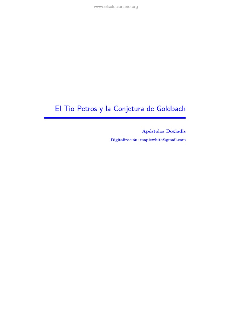 El Tio Petros Y La Conjetura De Goldbach Apostolos Doxiadis by Apostolos Doxiadis. Usage Public Domain Mark 1.0 Topics Novelas, Literatura griega, Matemáticas, Apostolos Doxiadis Collection opensource Language Spanish. El tío Petros y la conjetura de Goldbach es una reflexión sobre la admiración, el.