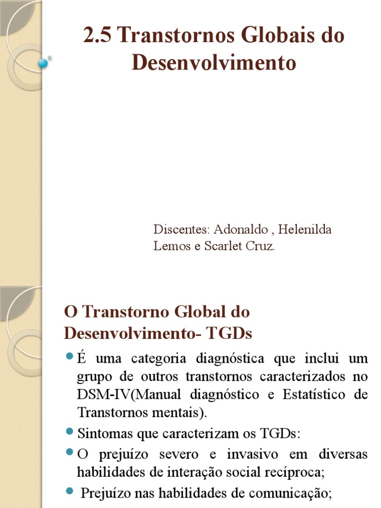 Transtornos Globais do Desenvolvimento 2 Educação Especial