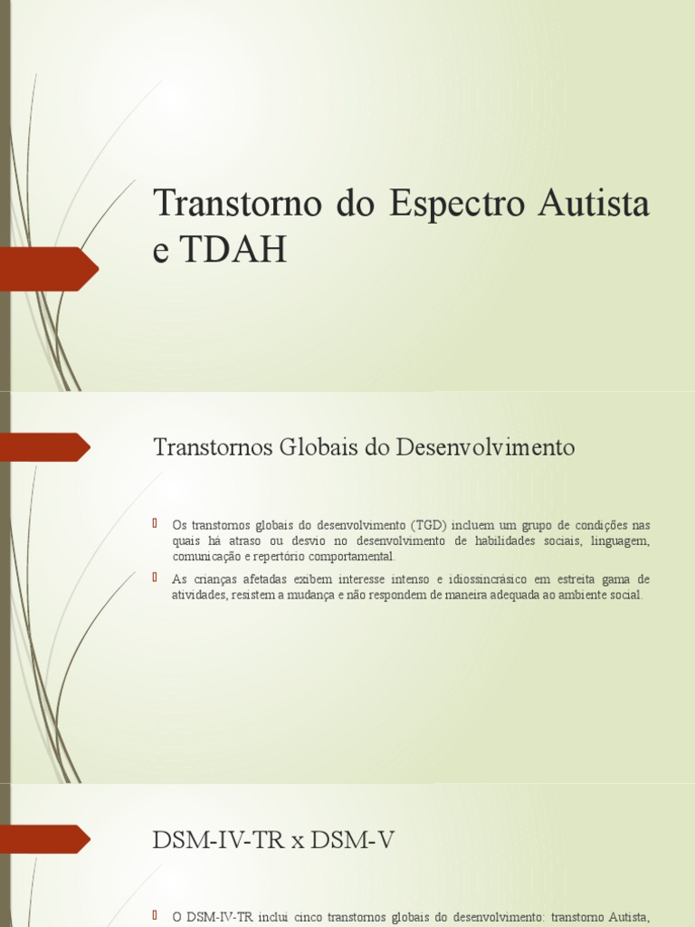 Transtornos Globais Do Desenvolvimento e TDAH PDF Espectro do autismo Transtorno de